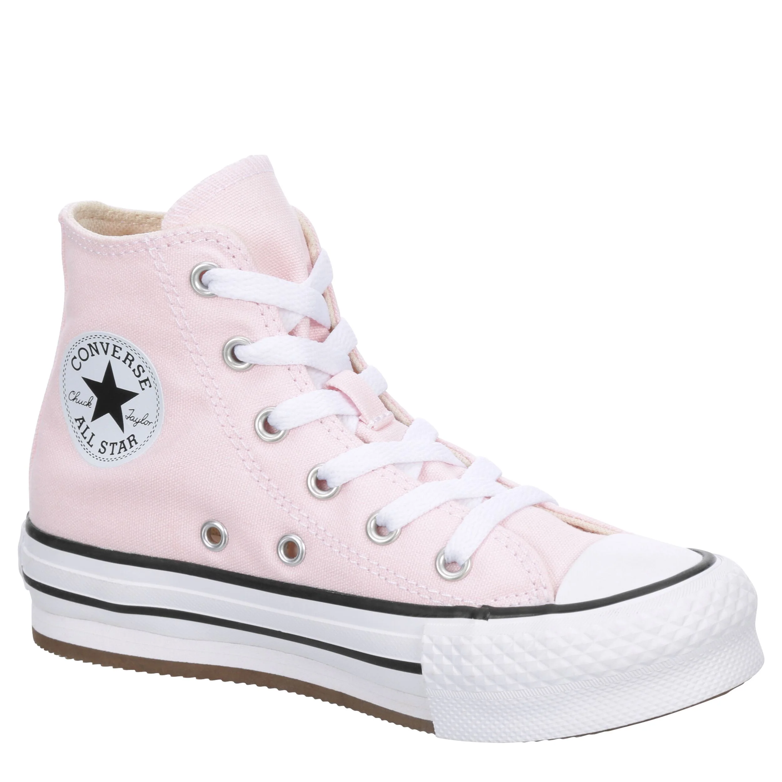 LIFT OFF: The high top, court favorite gets redesigned for kids, with a cushioned foam sockliner, plus softened stitches and linings. The classic canvas upper sits on top of an EVA foam platform midsole for elevated style. The look is finished with Chuck Taylor All Star classics like a star ankle patch, contrast midsole stripes, and diamond pattern outsole.