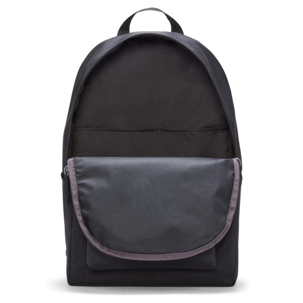 Take your gear to go with the Nike Heritage Backpack. Its spacious main compartment features a sleeve that holds up to a 15" laptop, so your computer is never out of reach. 2 zippered accessories pockets help keep your gear organized and easy to grab. This product is made with at least 65% recycled polyester fibers. Densely woven polyester provides heavyweight support.