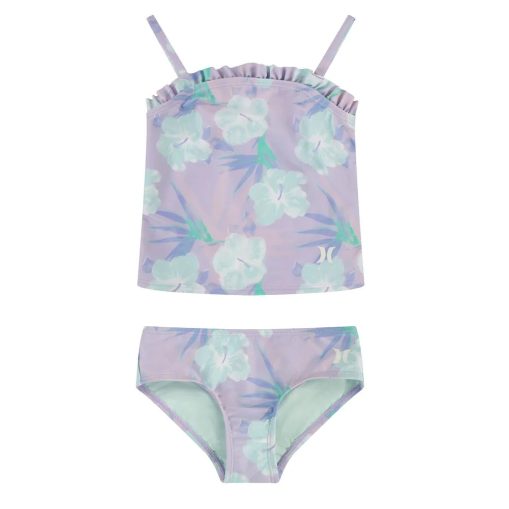 Splash into summer with the vibrant Hurley Tankini Set for kids. This 2-piece set, made of soft Dull Tricot fabric, offers UPF50+ sun protection for carefree play under the sun. Adorned with a lively allover print, it's the perfect mix of safety and style for your little swimmer.